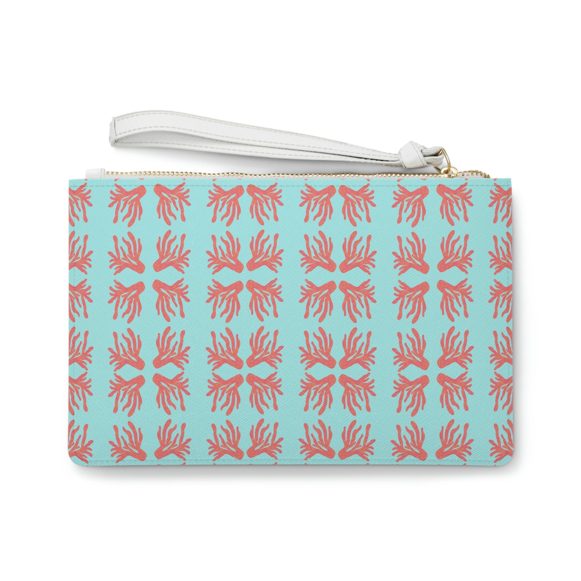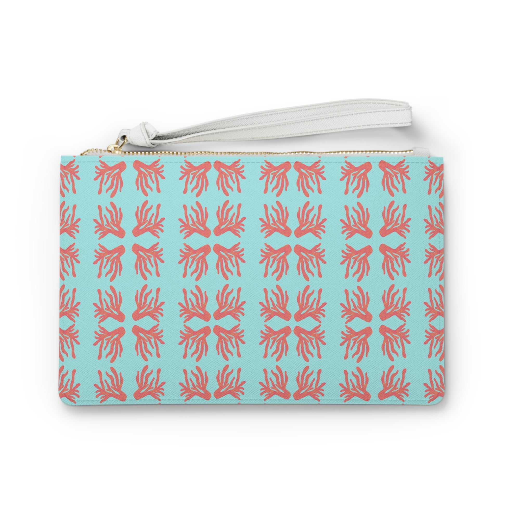 Designed with a loop handle to quickly free your hands, this custom clutch bag is made for the fashionista on the go. It can hold everyday essentials such as a phone, wallet, and keys. It features a zip fastening and a fully lined internal pocket. It is made of vegan leather in the Saffiano pattern finish that was invented by Prada.