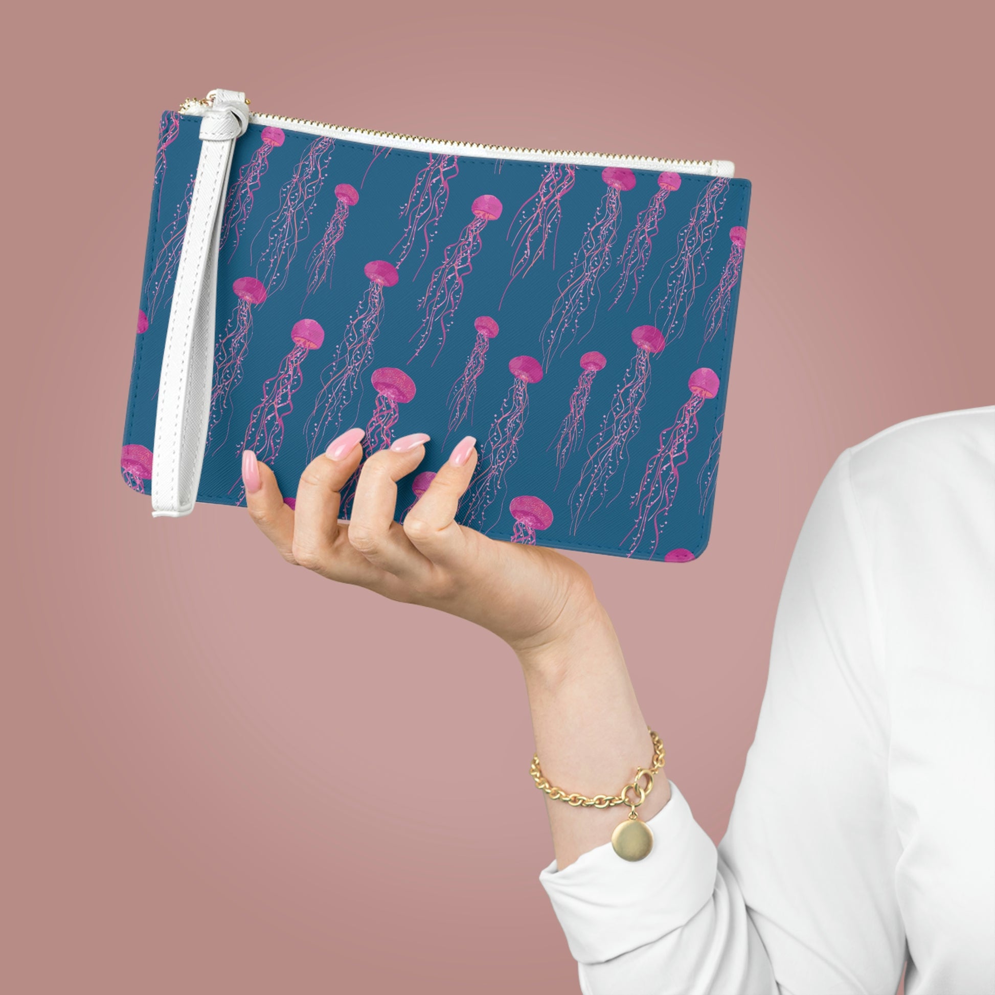 Designed with a loop handle to quickly free your hands, this custom clutch bag is made for the fashionista on the go. It can hold everyday essentials such as a phone, wallet, and keys. It features a zip fastening and a fully lined internal pocket. It is made of vegan leather in the Saffiano pattern finish that was invented by Prada.