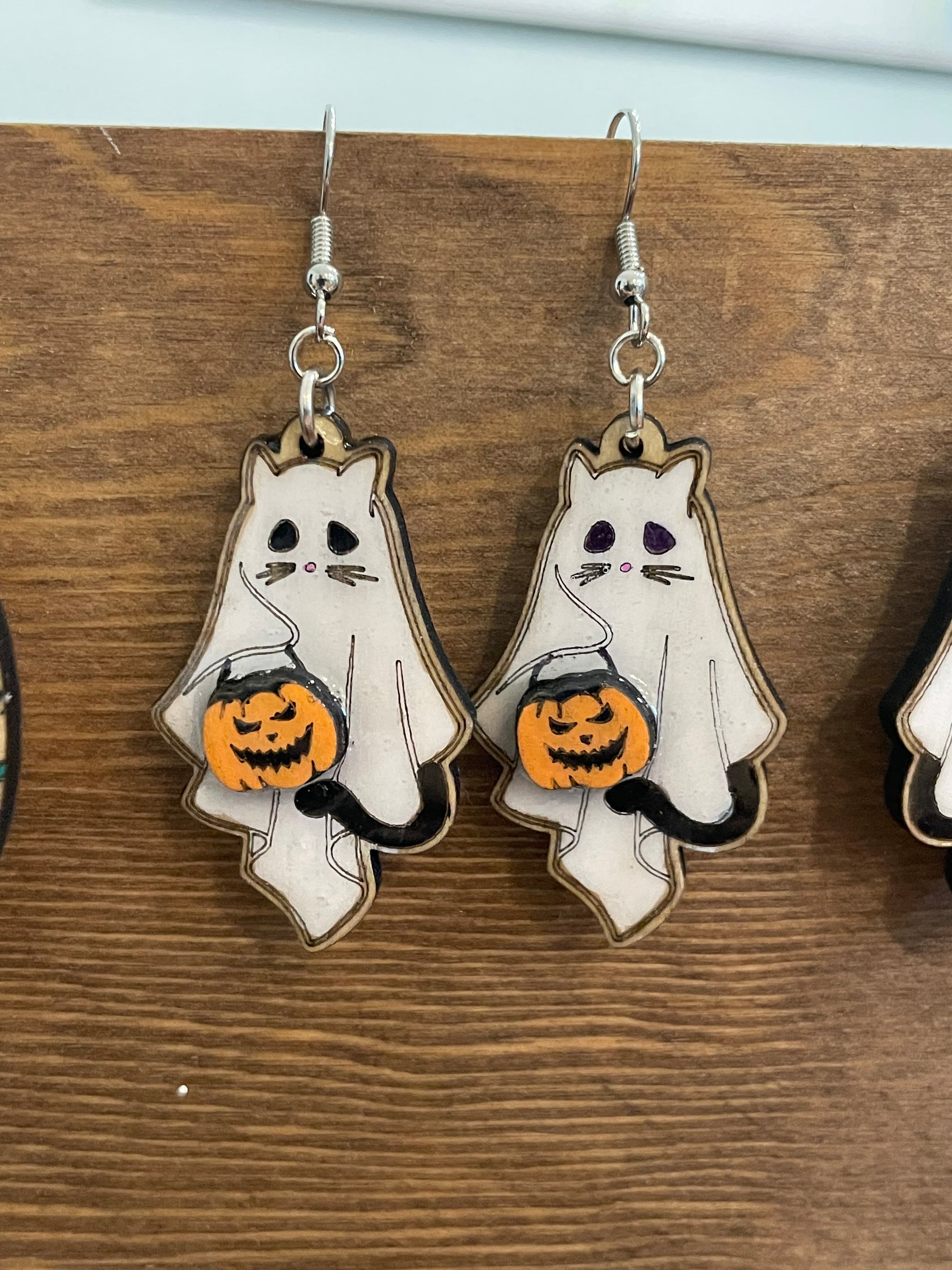 Halloween Ghost Cat Trick-o-Treater Earrings