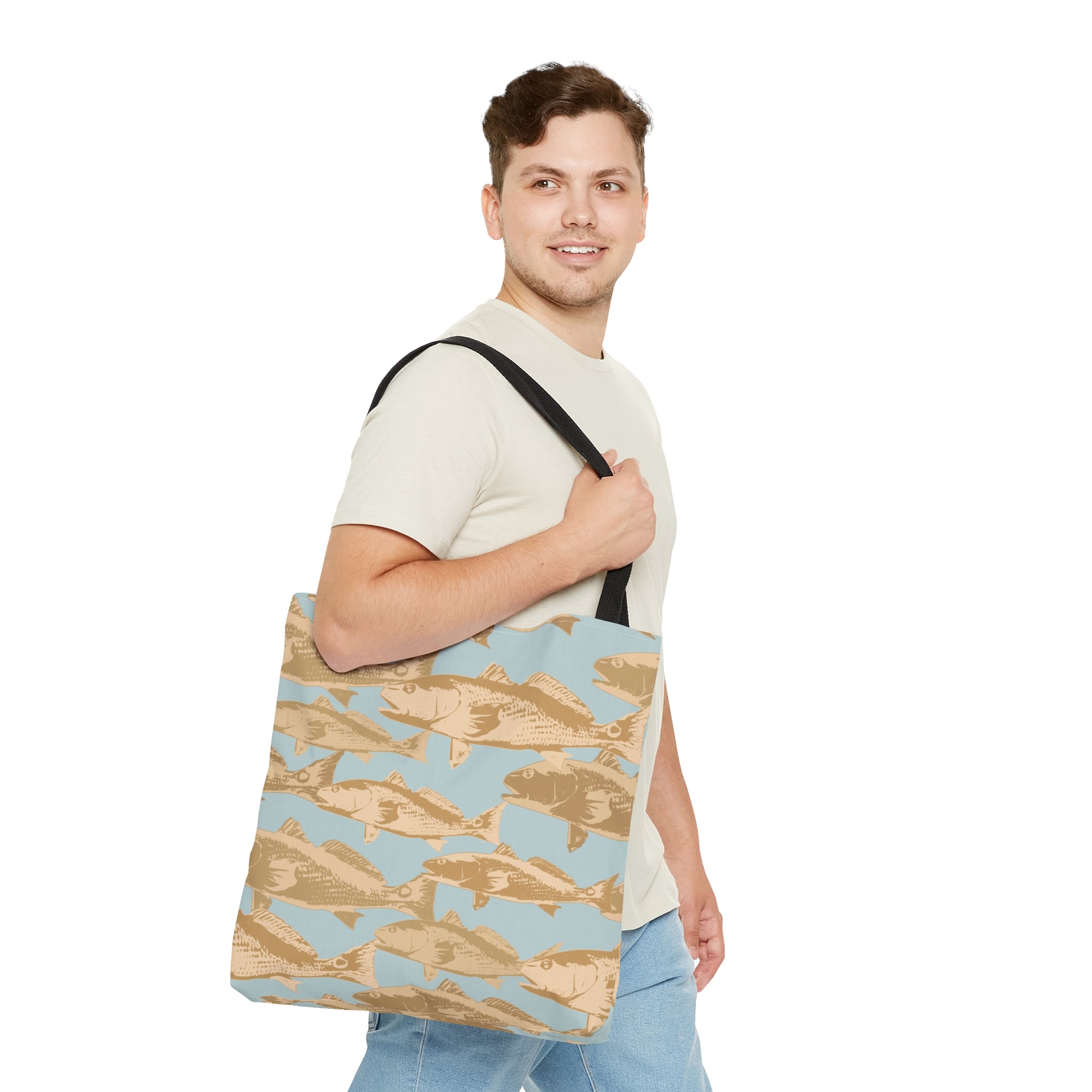 This practical, high-quality Tote Bag is available in three sizes. All over print provides comfort with style at the beach or out in town. Made from reliable materials, lasting for seasons. .: 100% Polyester .: Boxed corners .: Black cotton handles .: Black lining .: NB! Size tolerance 0.75" (1.9 cm))
