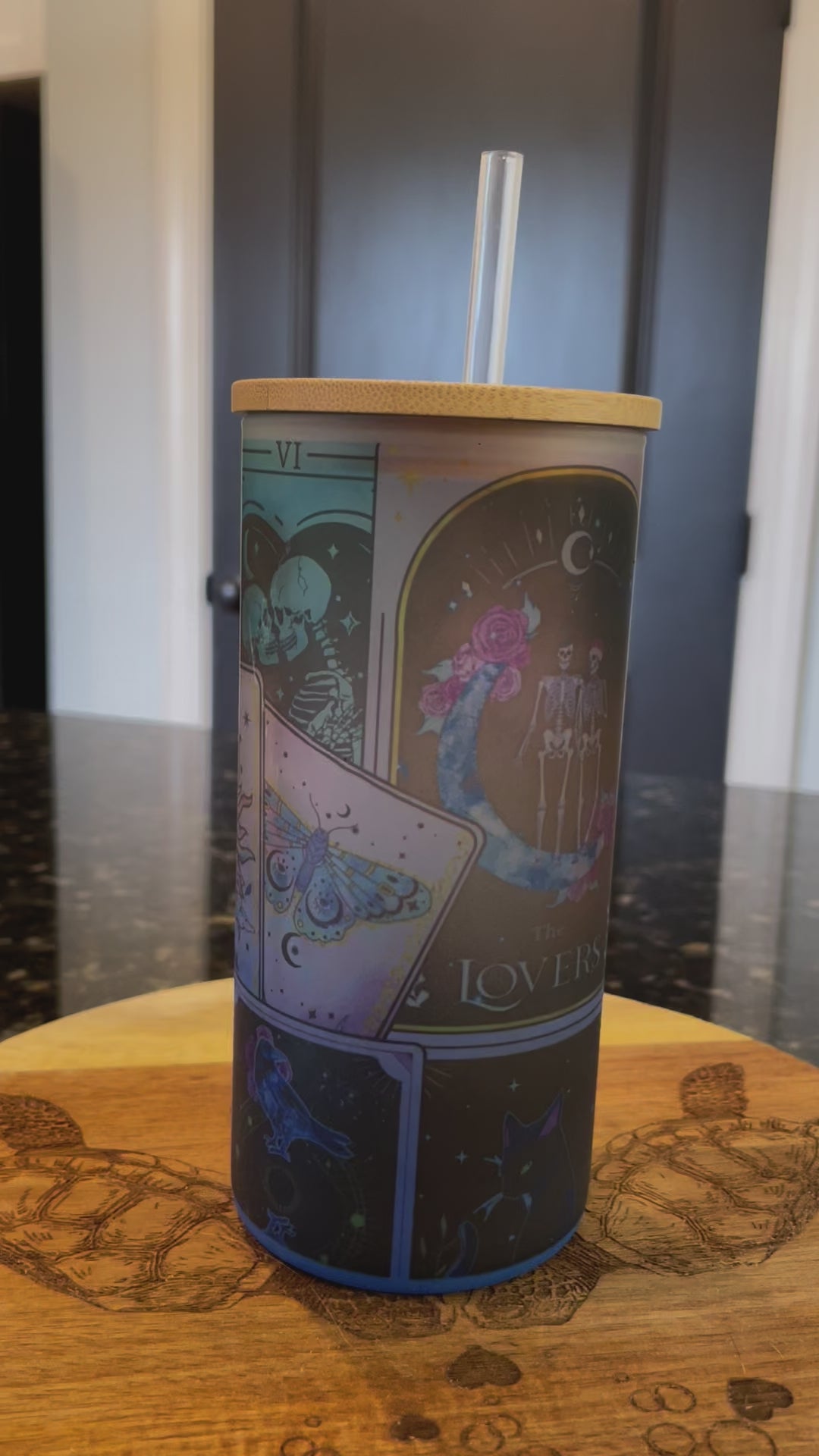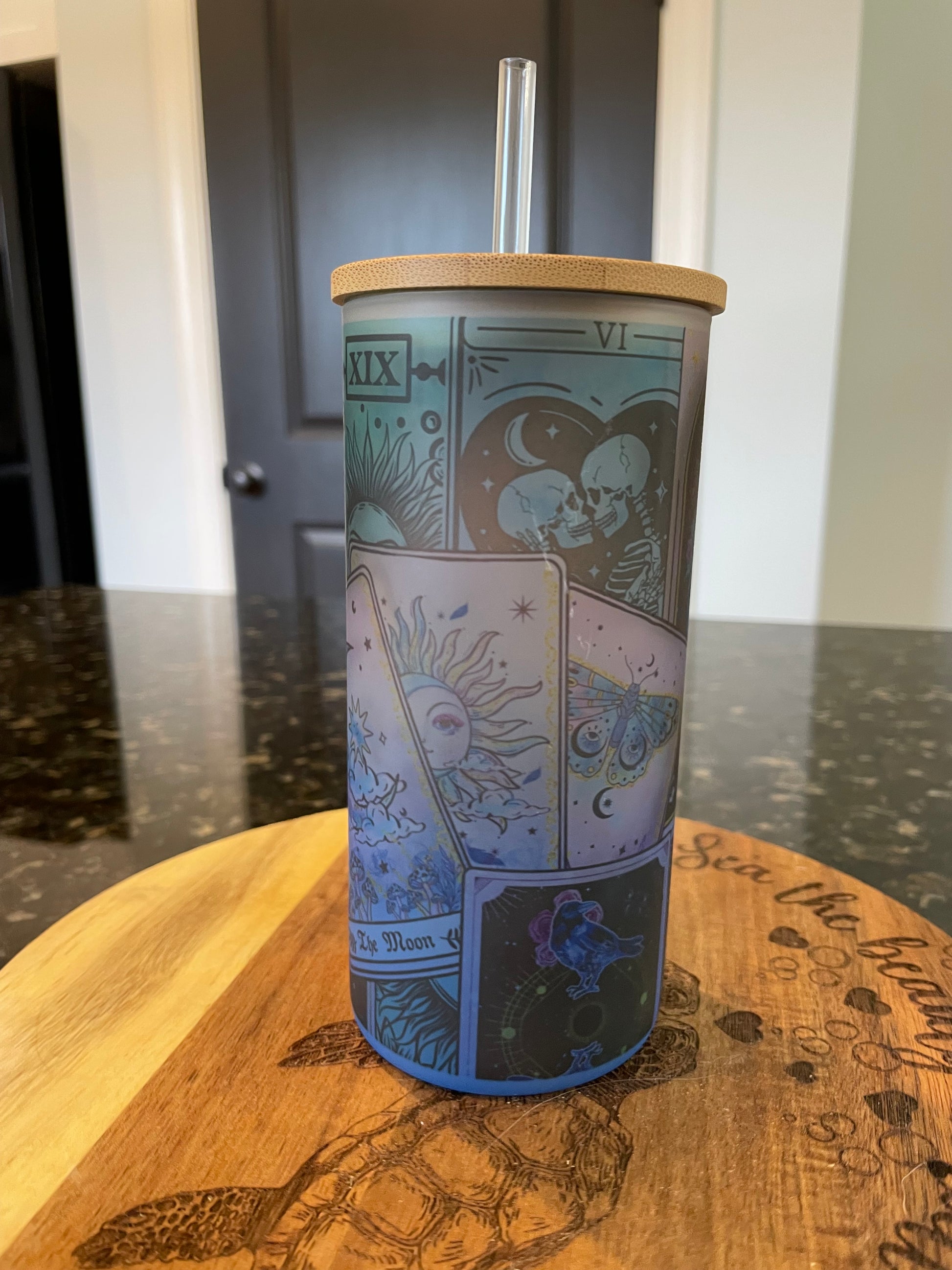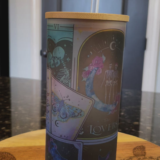 Tarot Card Glass Tumbler with Bamboo lid and straw