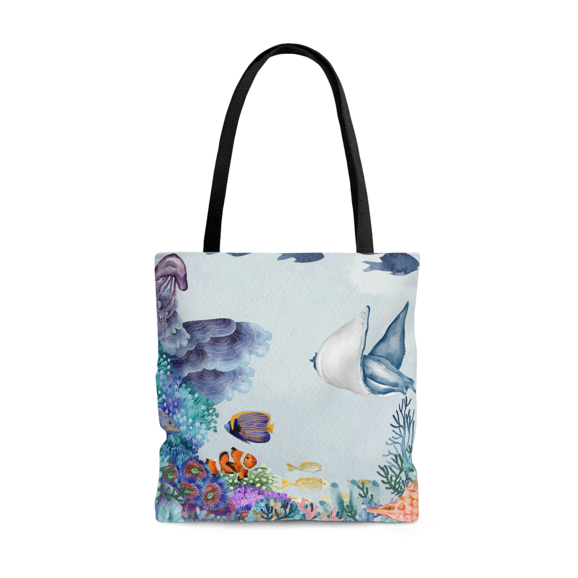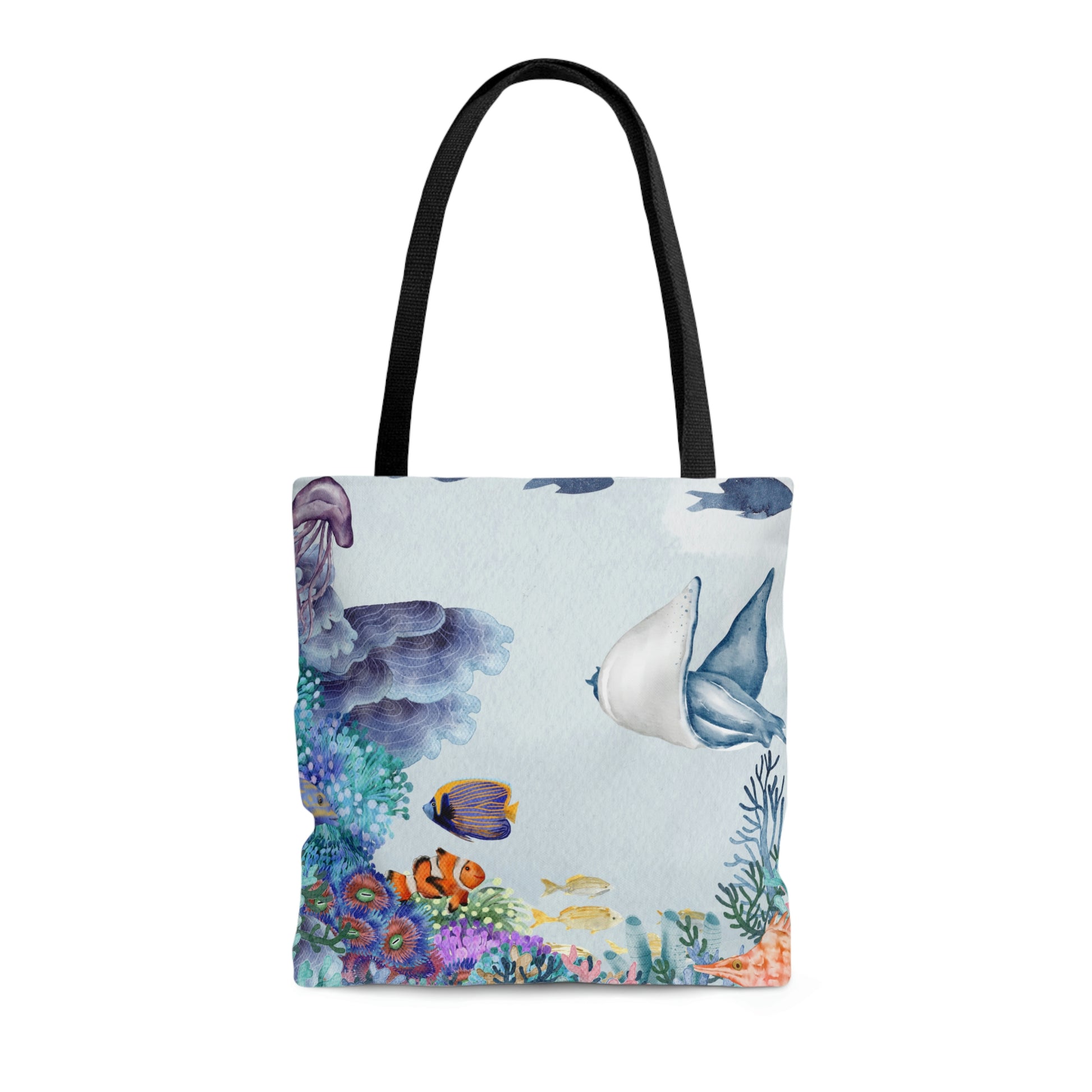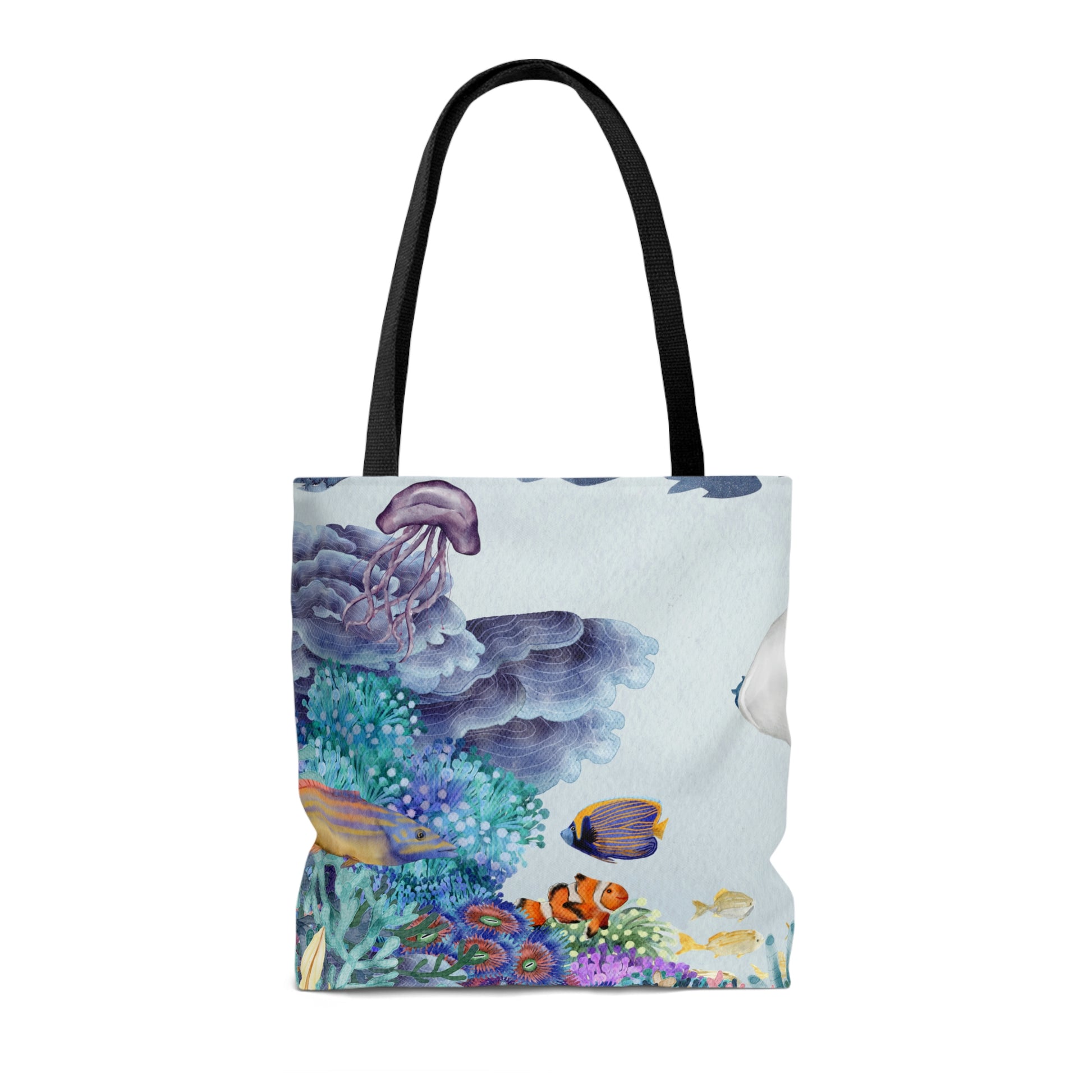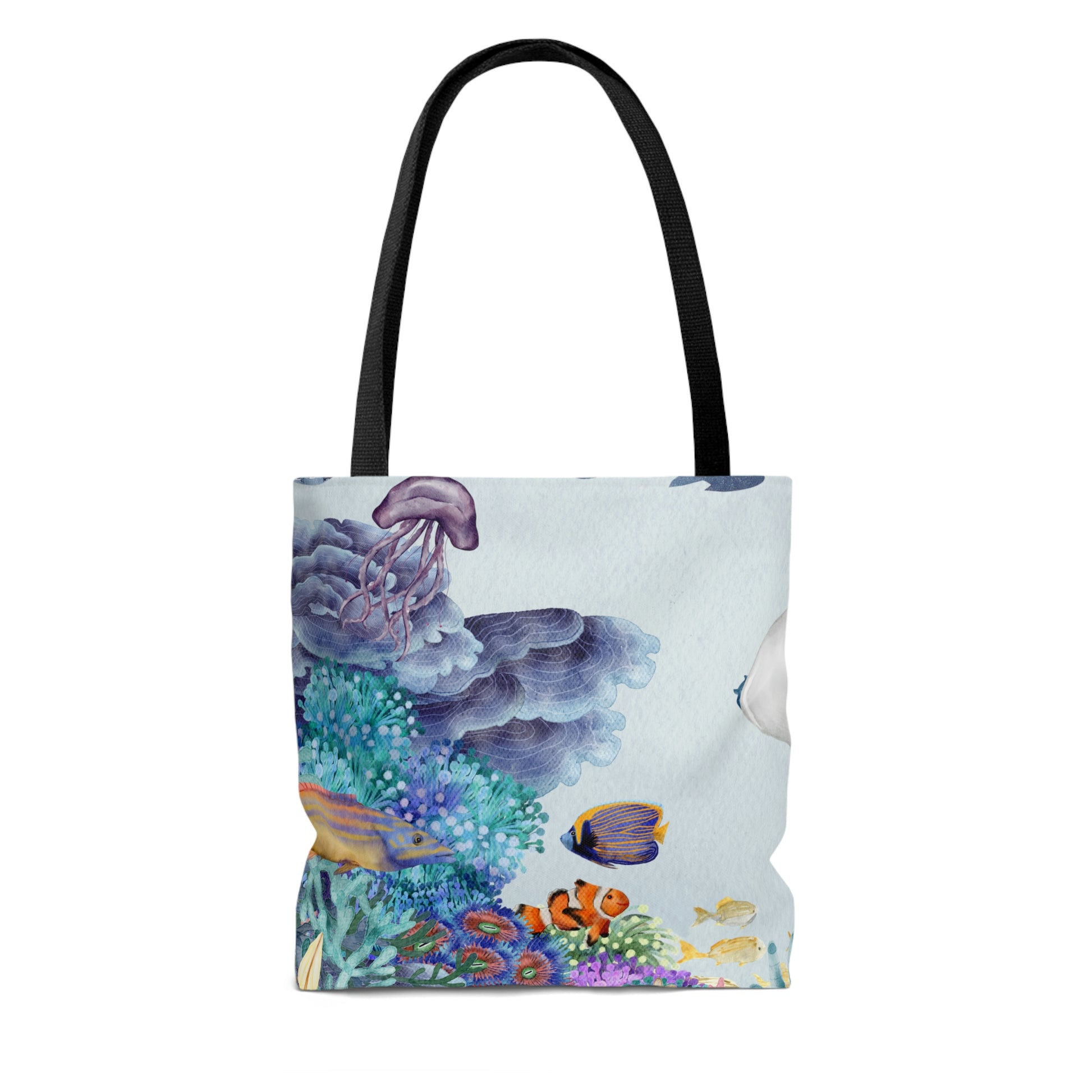 This practical, high-quality Tote Bag is available in three sizes. All over print provides comfort with style at the beach or out in town. Made from reliable materials, lasting for seasons. .: 100% Polyester .: Boxed corners .: Black cotton handles .: Black lining .: NB! Size tolerance 0.75" (1.9 cm))