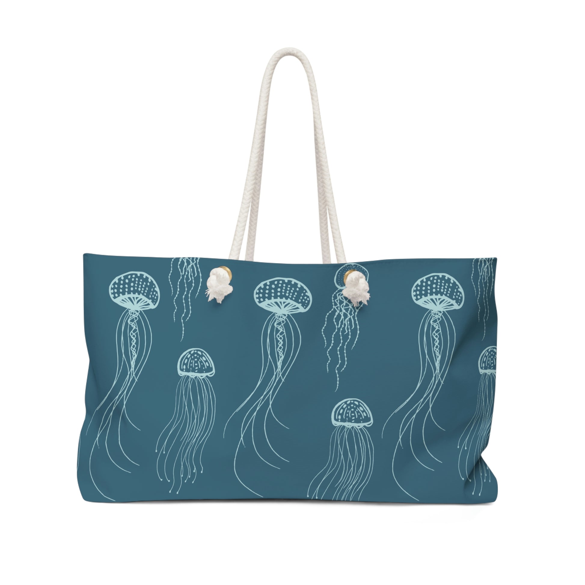 Our oversized Weekender Tote is perfect for your weekend at the beach or in town. The wide-mouthed, durable bag holds a generous amount of personal items and is easily held by its thick rope handles. .: 100% Spun Polyester .: T-bottom .: Cream sheeting interior lining .: One size: 24" x13" (60.9 cm x 33 cm) .: NB! Size tolerance 0.75" (1.9 cm))