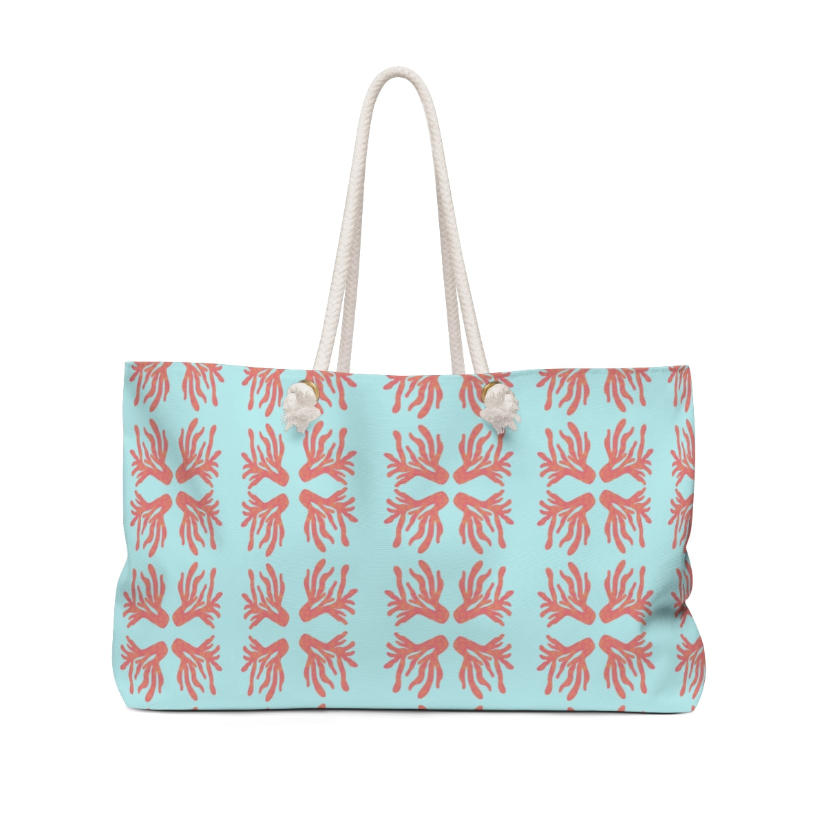 Our oversized Weekender Tote is perfect for your weekend at the beach or in town. The wide-mouthed, durable bag holds a generous amount of personal items and is easily held by its thick rope handles.