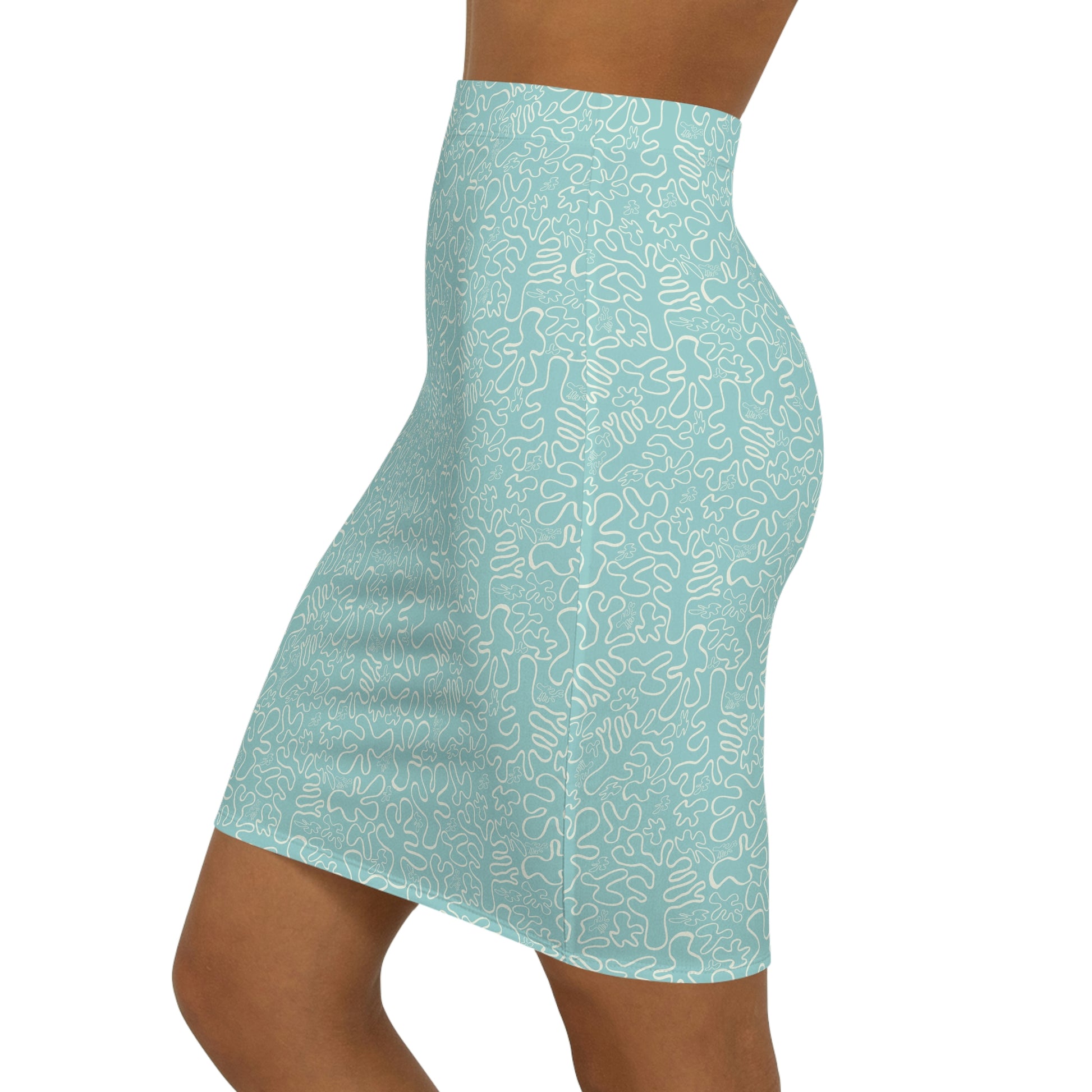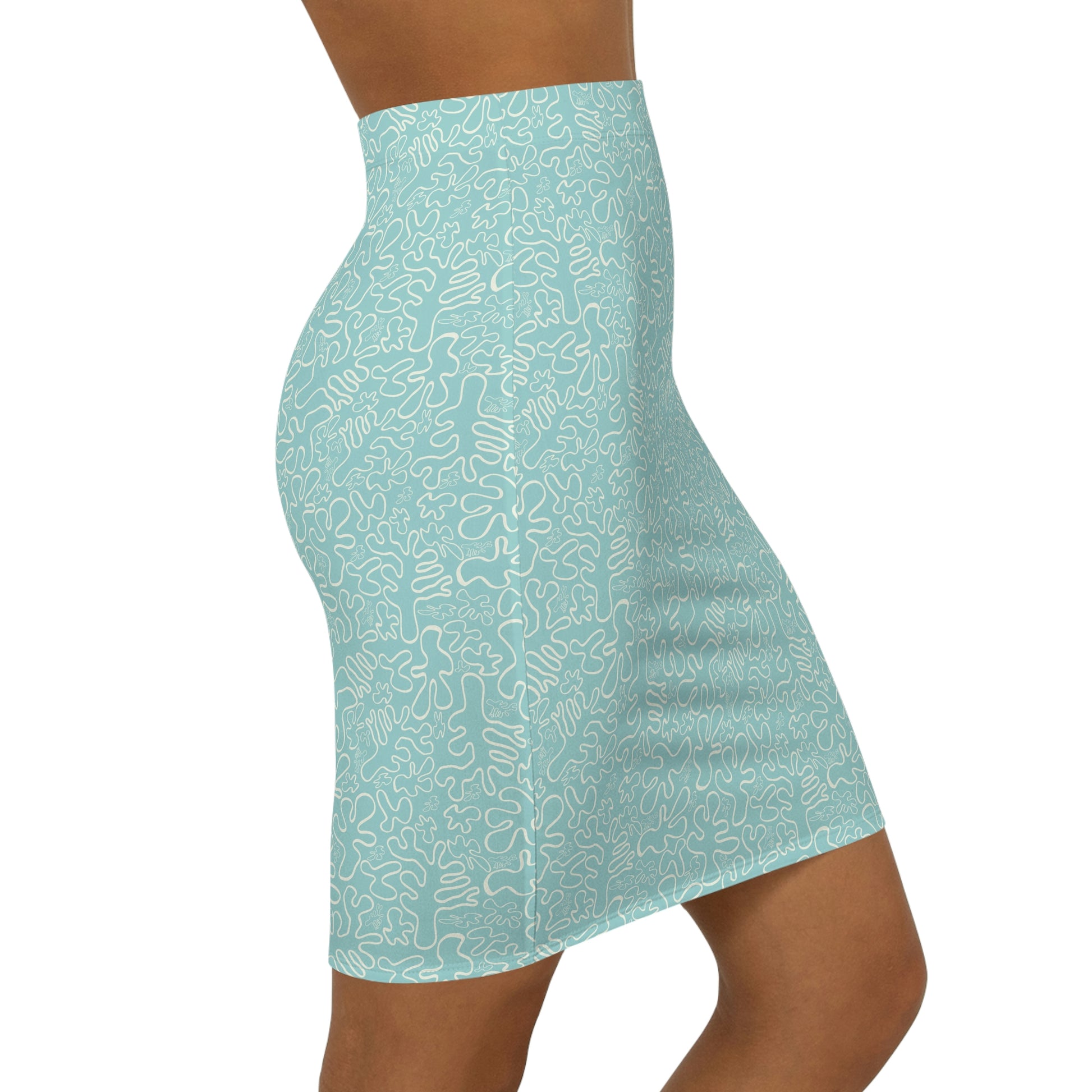 The custom pencil skirt is ideal for unbroken printing. It is made of 88% polyester and 12% spandex. This blend gives the garment a four-way stretch which allows the fabric to stretch both width- and length-wise. The garment has a slight tapering along the outer thigh to provide that signature straightened appearance. Your designs are printed all over the skirt, making for endless customizing avenues. .: Material: 88% polyester, 12% spandex .: Elastic waistband .: Seam thread color automatically matched to design .: Mid-waist slim fit .: Sewn-in care label
