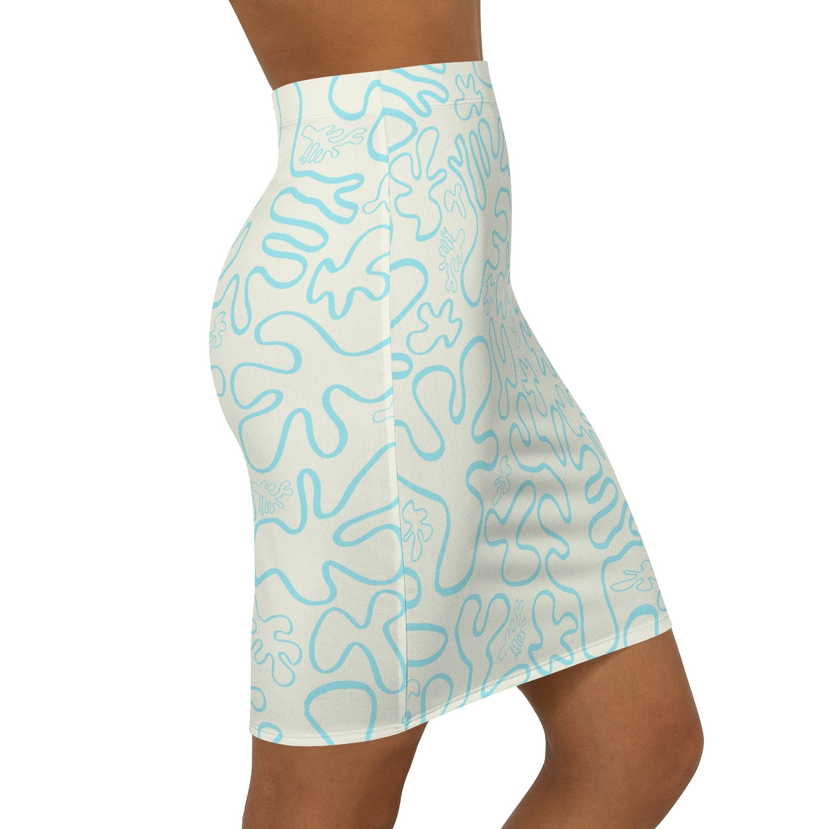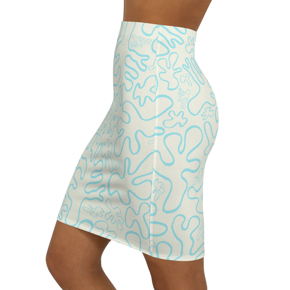 The custom pencil skirt is ideal for unbroken printing. It is made of 88% polyester and 12% spandex. This blend gives the garment a four-way stretch which allows the fabric to stretch both width- and length-wise. The garment has a slight tapering along the outer thigh to provide that signature straightened appearance. Your designs are printed all over the skirt, making for endless customizing avenues.