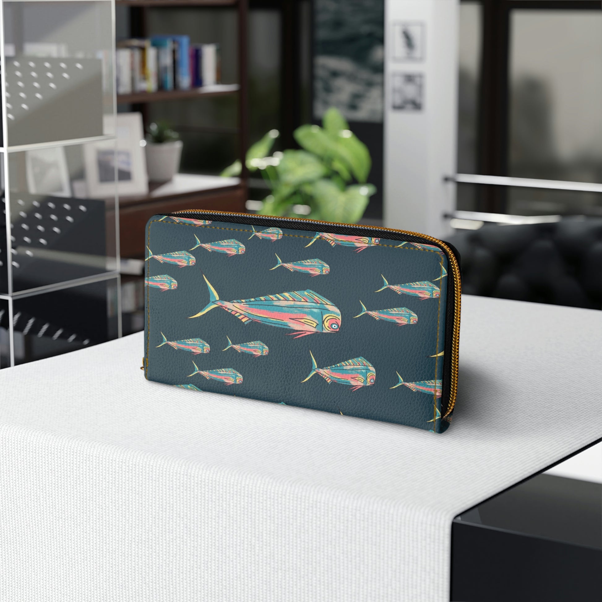 For carrying around all your credit cards, cash, and driver's licenses look no further than this personalized wallet. Made with cruelty-free faux leather, this wallet comes packed with utility and style. Add your designs and create a daily staple that is unique and full of character. .: Material: Cruelty-free faux leather .: Durable high-quality nylon zip and alloy hardware .: Gold color thread stitching .: Pockets for cash, credit cards, coins, and checkbook .: One size: 7.87" x 4.33" (20cm x 11cm)