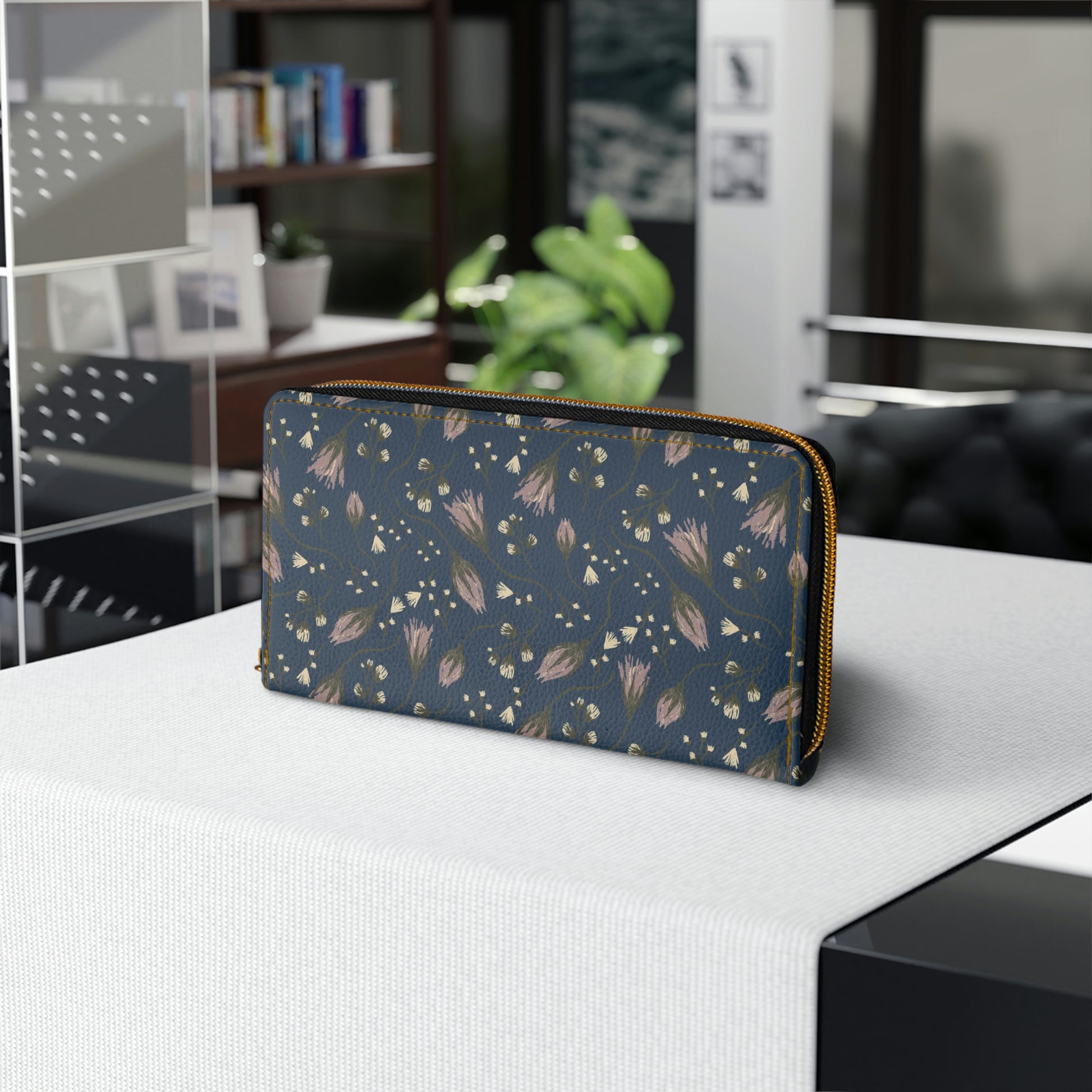 For carrying around all your credit cards, cash, and driver's licenses look no further than this personalized wallet. Made with cruelty-free faux leather, this wallet comes packed with utility and style. Add your designs and create a daily staple that is unique and full of character. .: Material: Cruelty-free faux leather .: Durable high-quality nylon zip and alloy hardware .: Gold color thread stitching .: Pockets for cash, credit cards, coins, and checkbook .: One size: 7.87" x 4.33" (20cm x 11cm)