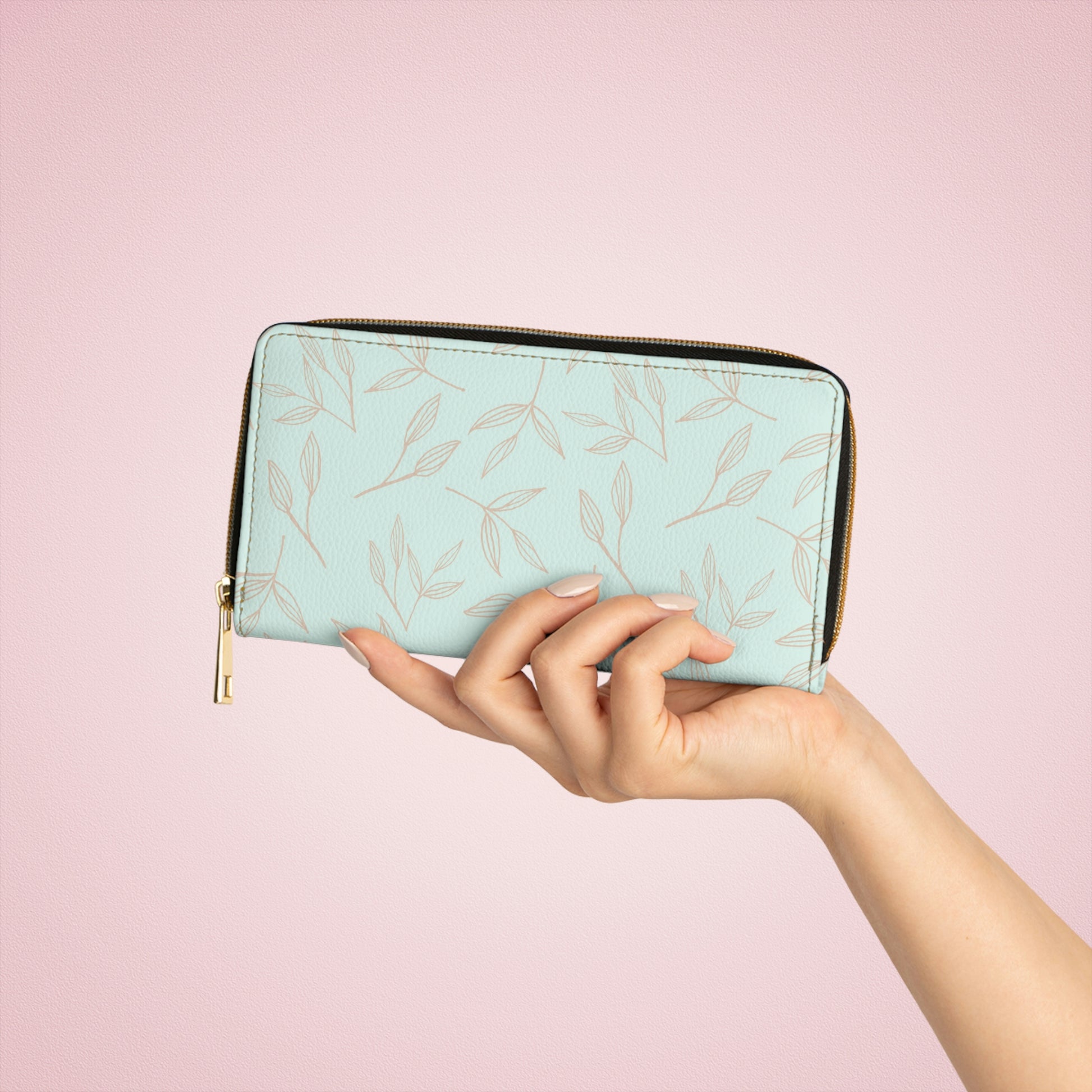 For carrying around all your credit cards, cash, and driver's licenses look no further than this personalized wallet. Made with cruelty-free faux leather, this wallet comes packed with utility and style. Add your designs and create a daily staple that is unique and full of character. .: Material: Cruelty-free faux leather .: Durable high-quality nylon zip and alloy hardware .: Gold color thread stitching .: Pockets for cash, credit cards, coins, and checkbook .: One size: 7.87" x 4.33" (20cm x 11cm).